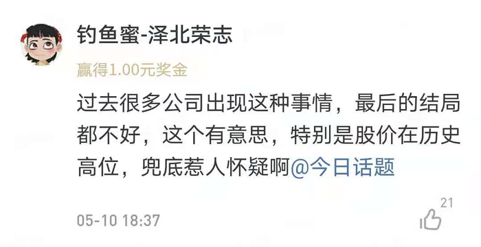 球友@钓鱼蜜-泽北荣志:过去很多公司出现这种事情,最后的结局都不好,这个有意思,特别是股价在历史高位,兜底惹人怀疑啊。