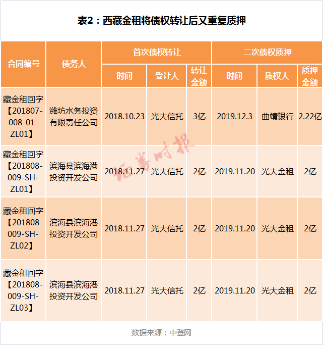 此外,西藏金租还将已经转让给光大信托新元1号的部分债权资产,进行了二次质押。