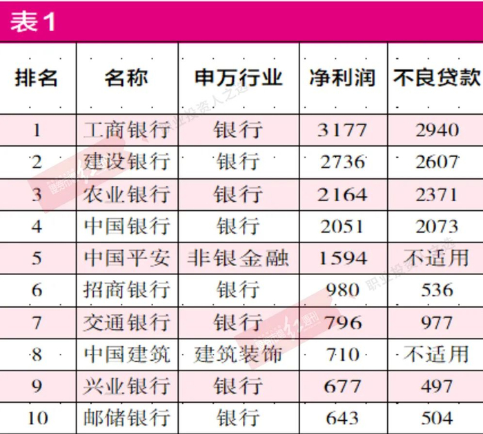 A股目前上市的近4300家上市公司中,商业银行赚取最多的利润。全部上市公司净利润排行前十的公司中,有8家是商业银行。2020年,38家上市商业银行赚走全部上市公司40%的净利润,这其中,最能赚钱的当属工、建、农、中四大国有银行。《红周刊》记者针对上市商业银行坏账的研究中却发现,他们的坏账总额排名同样居前。