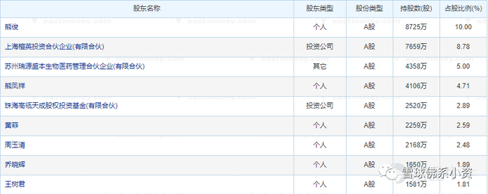 君实生物:2016年2月,君实生物在新三板挂牌后第二次股票融资时,珠海高瓴天成股权投资基金(简称“高瓴创投”)出资约1000万认购君实生物2520万股,并获得董事会席位。君实生物2021年一季度财报显示,高瓴创投位列第五大股东。