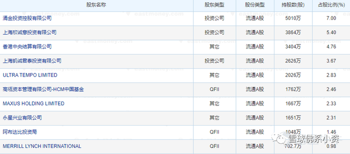 上海机电:2020年三季度新进,持有2656.2万股,持股比例3.29%。