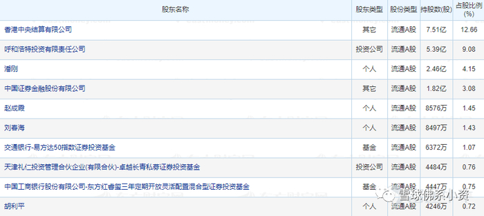 伊利股份:伊利股份为我国乳制品行业的龙头企业。2021年一季度,高瓴资本旗下的天津礼仁投资合伙企业出现在伊利股份的前十大流通股东名单中。
