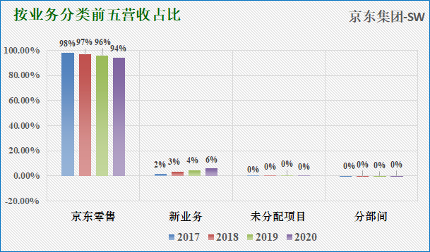 公司2020年京东零售业务仍是主要收入来源,占比达94%。