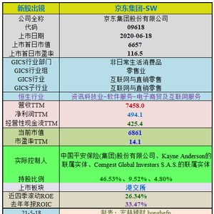 2020年06月18日首发港交所上市,当天收盘市值6657亿。