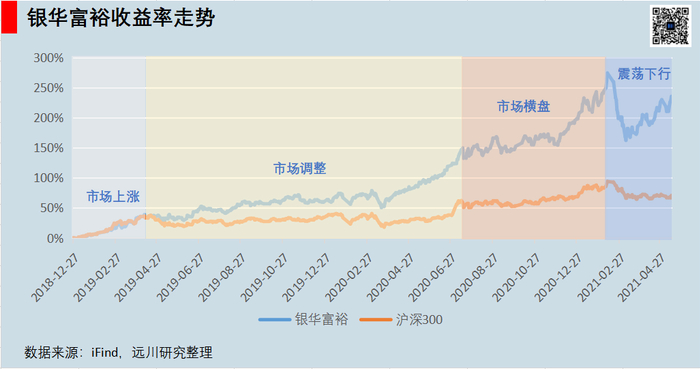 说完焦巍任职银华以来的业绩后,我们再来观察在市场风格转换,甚至极端行情下,焦巍是否能顶住压力。对于这一块而言,2018年以来,焦巍在市场上涨期跟的上上涨、在震荡调整期能够明显跑出超额、在横盘振荡期净值加速抬升。特别是焦灼的2019年,焦巍创造了62.89%的收益,远远跑赢沪深300。