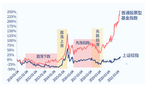 当然,这是美股较早期的十年期定投效果研究,定期定额投资是否适合我国的情况呢?小欧回测了一下过去十年间定投普通股票型基金指数的情况。