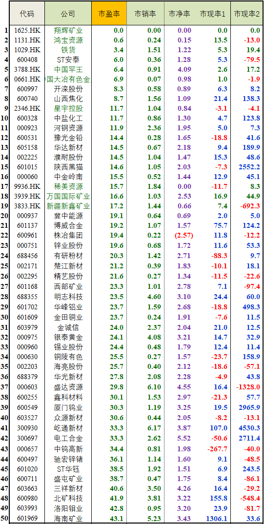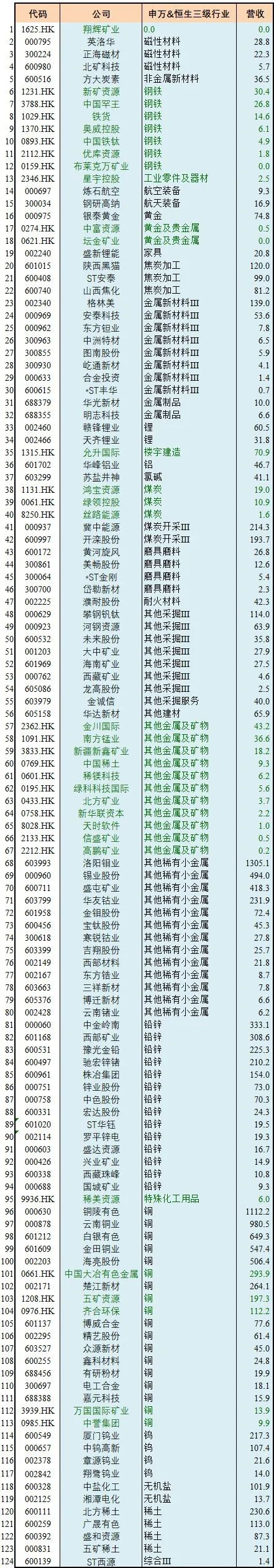 【GICS行业巡礼】124家“多种金属与采矿”行业沪深港上市公司初筛选