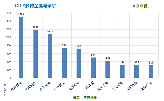 当前市值前三:赣锋锂业1503亿,洛阳钼业1178亿,华友钴业1076亿人民币。