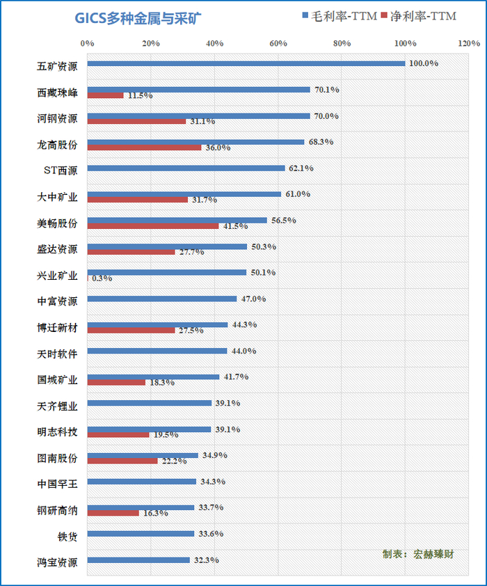 毛利率三强:五矿资源、西藏珠峰、河钢资源