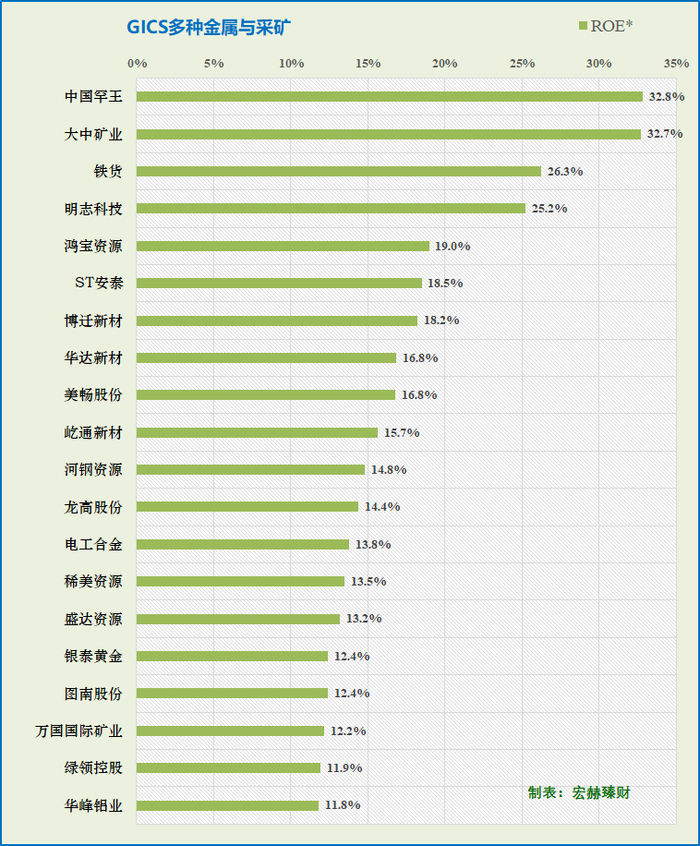 ROE中位数:4.6%。前三名:中国罕王、大中矿业、铁货