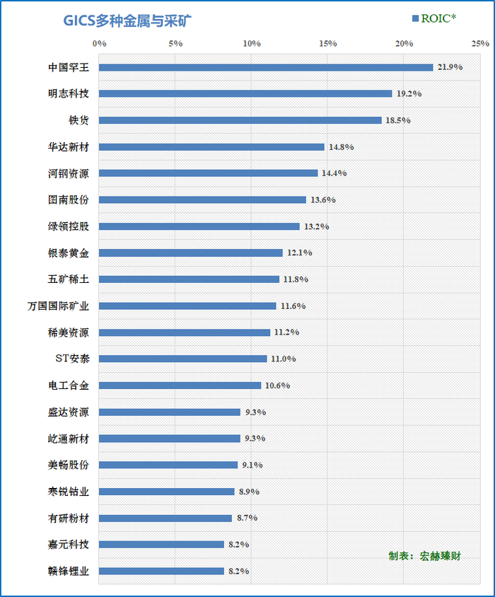 ROIC*中位数:2.7%。前三名:中国罕王、明志科技、铁货。