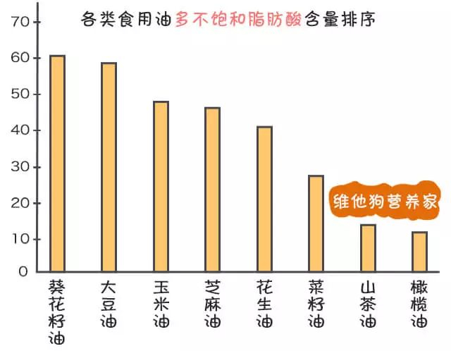 ②这种脂肪酸的健康程度是(如果非要排序):多不饱和脂肪酸>单不饱和脂肪酸>饱和脂肪酸,所以一般来说饱和脂肪酸含量低,而多不饱和脂肪酸含量高的油相对更健康;