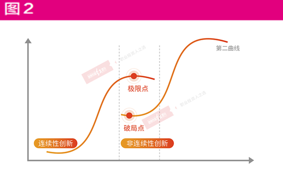 “第二增长曲线”的最早提出者是英国著名管理学大师查尔斯·汉迪。1997年,查尔斯出版了其经典著作《第二曲线:跨越“S型曲线”的第二次增长》。查尔斯认为,任何一家公司发展到一定程度,都面临寻求新的业务增长点的困扰。成熟的企业总是会在第一增长点还在蓬勃发展的时候,就积极准备寻找第二增长点了。如下图: