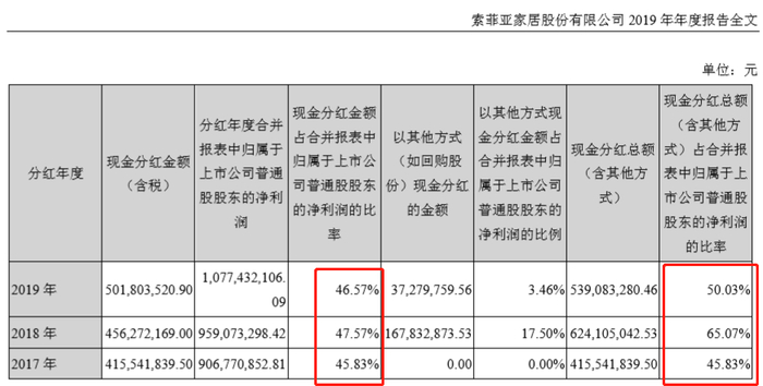 ③应收可控。除了直接面向零售客户,公司还有一部分大宗业务,主要面向房地产公司,做精装修里带的那两三个柜子。这部分业务的增速比零售渠道高,但缺点是下游强势,只能赊销。2019年末公司应收账款和票据共10.4亿,规模尚可,另外索菲亚还可以将账期转嫁给上游的板材供应商,应付共8.4亿。一进一出,再算上占用客户的资金,综合看公司现金状况还是很舒服的,这也让索菲亚可以十分慷慨地分红和回购。