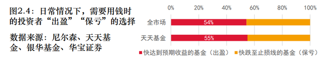 在假设需要用钱的情况下,“快达到预期收益”和“快跌至止损线”的基金中,投资者会赎回哪一个?《白皮书》结调研果显示,超过50%的投资者选择保留亏损仓位,体现出温和的弱处置效应。