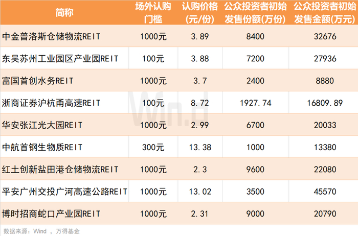 导致初始上市交易的份额占比相对较低。尽管这9只REITs募集资金预计募集规模达314.02亿元,但短期内场内流通或不超过100亿元。短期场内流通份额较少,而市场关注度较高,可能会导致REITs刚上市波动较大。