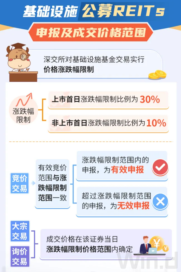 公募REITs是封闭式基金,成立后,不能申购、不能赎回,但可以通过二级市场买入、卖出。二级市场交易与ETF、LOF基金类似。上市首日涨跌幅限制比例为30%,非上市首日涨跌幅限制比例为10%。