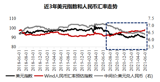 站在当前时点,人民币短期或回归双向波动甚至有边际走弱风险,中期美元指数或拐头向上,更长时间维度,对人民币汇率走势和人民币国际化进程可保持乐观。首先,短期来看,除政策层面释放“不把汇率作为工具刺激出口或抵消输入性通胀压力”的态度外,根据国外经验,每年的6-8月是境外上市中资企业分红购汇高峰期,外汇需求增加也会增加人民币短期贬值的压力。中期来看,随着美国疫苗接种更加接种“群体免疫”、美国经济修复的进一步推进,以及下半年美联储可能与市场沟通Taper等,美元指数的进一步下行空间已十分有限,甚至有拐头向上的可能。不过,更长时间维度,随着人民币国际化进程的加速和中美经济总量差异的缩减,对人民币汇率长期的走势可更为乐观。