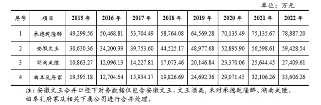 2012年至2016年,联想控股以及丰联酒业通过一系列的收购,以总计约21亿元的代价先后收购了河北乾隆醉、安徽文王贡酒、湖南武陵酒以及山东孔府家酒,这些白酒都被称之为地方名酒。