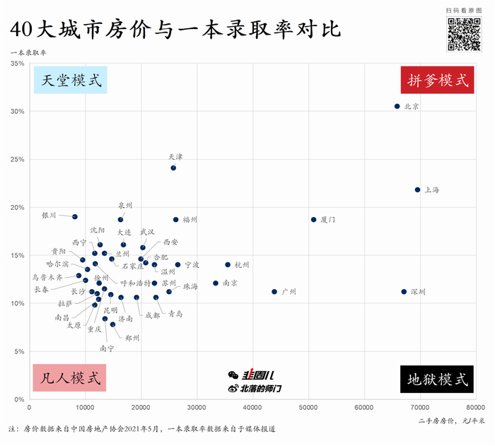 40大城市房价与一本录取率对比。。。看完清淡定