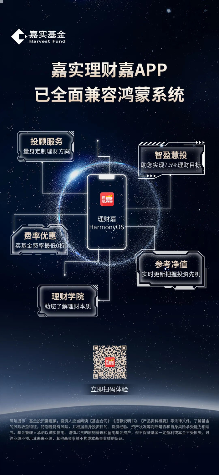 为满足广大升级鸿蒙系统用户的使用需求,嘉实基金已在第一时间组织团队测试验证了理财嘉APP在鸿蒙系统的兼容性和稳定性,确保升级到鸿蒙系统的客户能够稳定使用理财嘉APP,全力支持操作系统国产化。