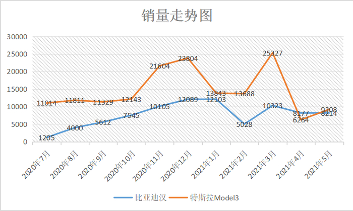 尤其在与竞品Model 3的竞争中,比亚迪汉的表现可圈可点。可以说,在25万元以上的新能源汽车市场,比亚迪汉还是首个在此价格区间做到月销过万的中国品牌。特斯拉已非一家独大,比亚迪汉具备与之掰手腕的实力。尽管特斯拉Model 3销量暂时保持领先,但销售波动十分剧烈,多次出现月度销量环比“断崖式”下滑的情形。