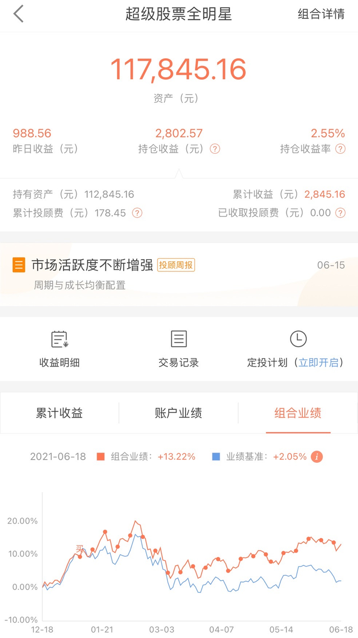 2021年打算做个实盘买家版,就是每周买5000块钱中欧的投顾产品,目前主要是超级股票全明星偏股票(目标是钱生钱,不构成推荐建议)。