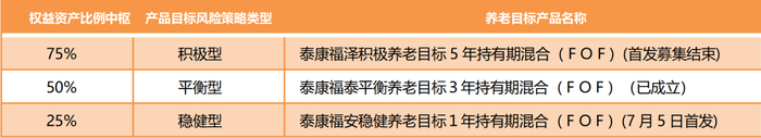 至此,泰康资产三只“福”系列养老目标风险策略FOF,覆盖了稳健、平衡、积极3种目标风险策略,力求对绝大部分风险偏好类型养老投资者的精准对接,多策略覆盖满足多层次风险收益需求。