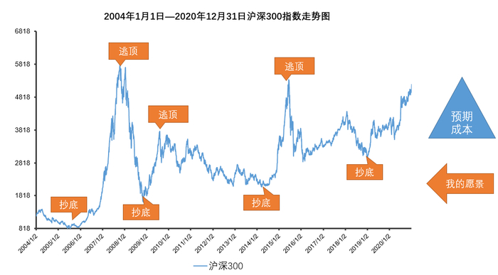 正如上图所示,每个投资者都想抄底、逃顶,可是多数投资者是一买买到山顶上;一抄抄到半山腰。