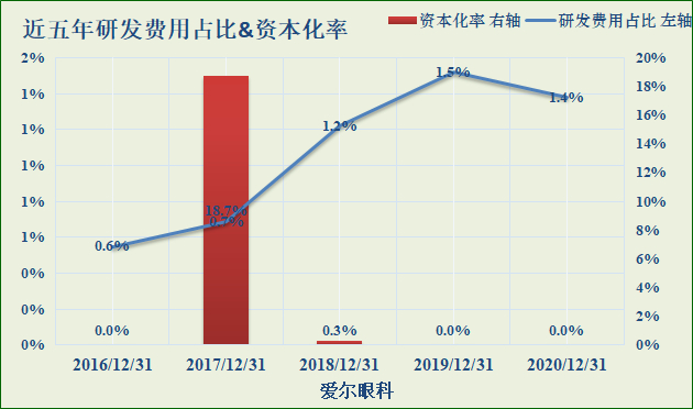 ◈爱尔眼科研发费用在该细分行业排名【3/27】。2020年研发费用为1.6亿。