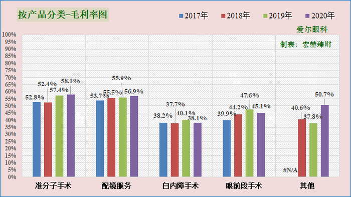 视光业务的角膜塑形镜、屈光业务的定制屈光手术等高端业务的推广迭代使得屈光及视光项目在2009-2020年间始终维持50%以上的高毛利率。