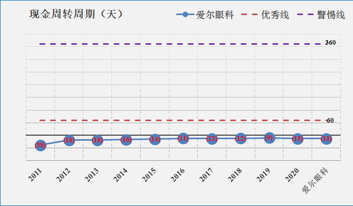 现金循环周期又可称为净营业周期,是考量企业日常运营环节的现金流状况,优先关注那些该指标小于60的企业,负数更为优,表示企业的还款周期远大于存货变现期。警惕该指标大于360的企业。