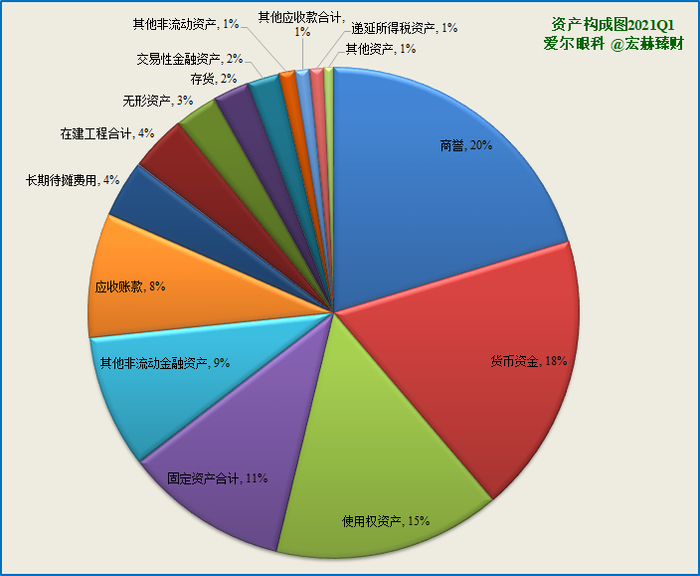 第一大资产为商誉38.7亿,占比20.2%;20Q4占25.0%。