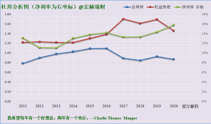 宏赫臻财建议关注未来杜邦指标趋势呈现:【低杠杆或适度杠杆(1.2-3)+周转率接近或大于1且有向上趋势+稳健增长的中高净利率>15%】