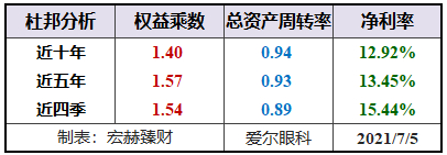 爱尔眼科杜邦机构:净利率水平中等,适度杠杆,接近于1的周转率。
