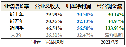 爱尔眼科过去五年归母净利润复合增速:32.13%,近四季增速56.50%,未来3年一致预期复合增速为32.47%。