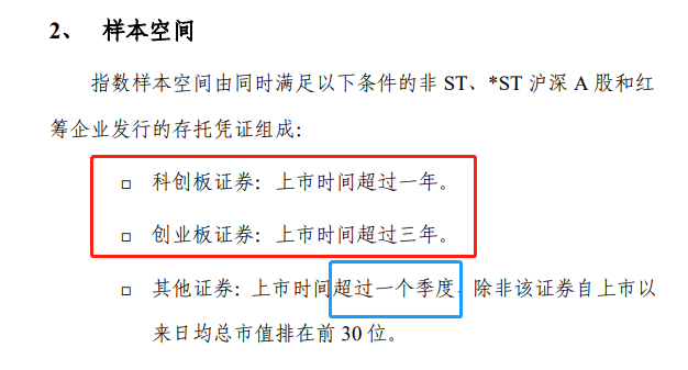 在指数的编制规则中,样本空间直接决定了指数的选股范围,不在样本空间的证券就不能被指数选入。自科创板诞生之后,沪深300指数也针对新事物修改了指数编制规则,但是在当前的规则下,我们明显能感受到在沪深300指数纳入科创板与创业板股票时,两者没有被一碗水端平,科创板新股纳入沪深300指数的速度明显更快。