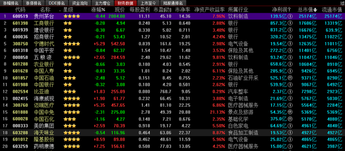 A股总市值TOP20