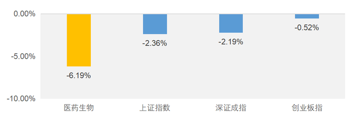 申万一级医药生物指数与A股主要指数表现对比