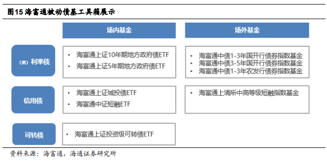 海富通基金成立于2003年4月,根据海通证券基金规模数据报告,截止到2021年3月31日,公司共管理81只公募产品,合计管理规模达到784.58亿元(剔除货币及部分理财,且剔除ETF联接基金和FOF持有内部基金重复部分规模)。包括了10只股票指数型产品和8只债券指数型产品,其中股票ETF和债券ETF的数量分别为3只和5只。目前,海富通被动债基“工具箱”逐渐成型,涵盖场内外、信用利率、中长短久期等不同风格,为投资者提供多样化的工具产品。