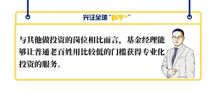 “与其他做投资的岗位相比而言,基金经理能够让普通老百姓用比较低的门槛获得专业化投资的服务。基金经理做好他的工作,不仅可以提升个人投资水平,也会对整个社会产生正向回报。基金经理的工作是很有社会价值的。”