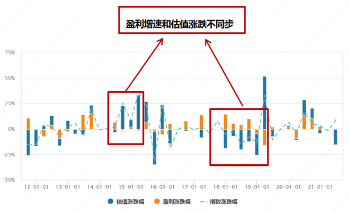但更多时候,我们发现估值涨跌跟企业盈利增速会出现不同步的情况,比如说当下中证500成分股盈利水平增速不断提升,但估值水平却在下降。