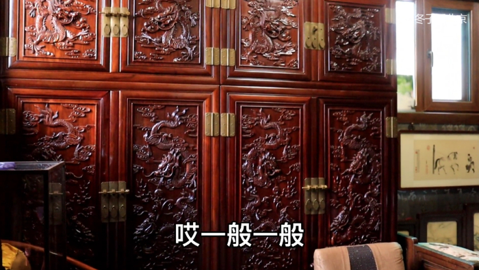 入眼大多都是中式家具,两尊柜子的柜体上,还雕刻着精致的龙腾祥云。