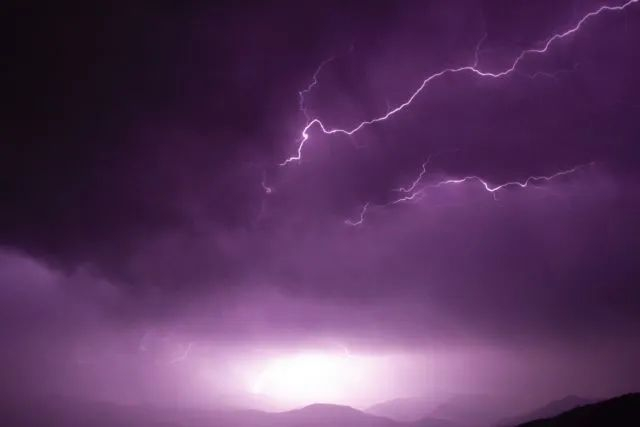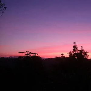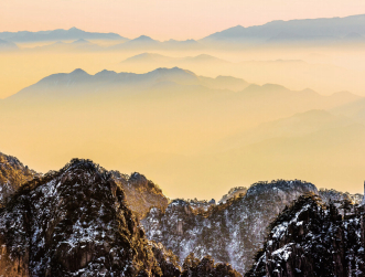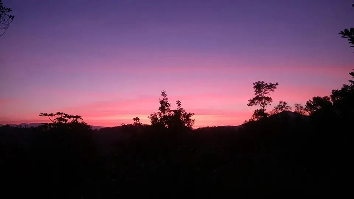 夕阳薄雾笼罩远山所现紫色,名为“暮山紫”;