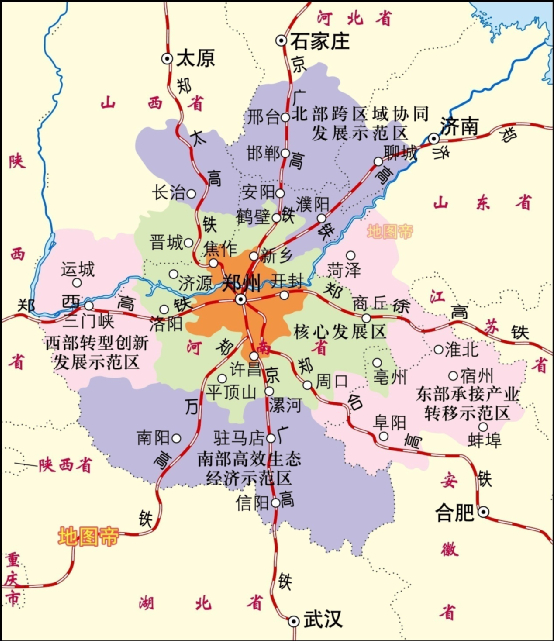 河南省地处中原、黄河中下游,跨长江、淮河、黄河、海河四大流域,总面积16.7万平方千米,常住人口9937 万人(2020年)。按顺时针方向看,河南与山东、安徽、湖北、陕西、山西、河北相邻。