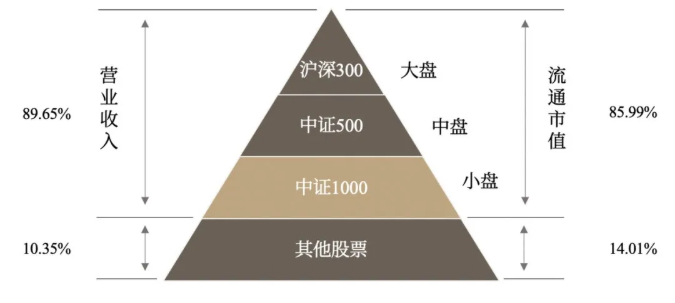中证1000:选择了A股市场上剔除了沪深300+中证500(=中证800)成分股之后,规模相对最大的1000只股票。