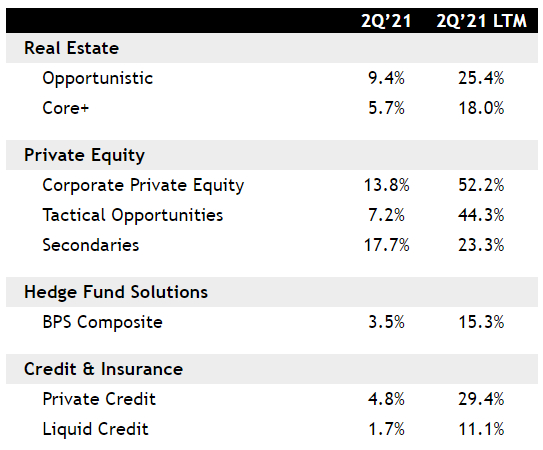 跨越资产类别的强劲升值,让黑石确认的投资收益达到40亿美元,而2020年同期是亏损的。黑石在二季度有美国商业服务公司TaskUs和印度电动汽车零部件制造商SonaComstar两个重磅IPO,让绩效分配收入达到了8亿美元,是上年同期的8倍。