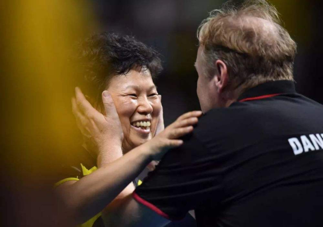 一开始只是站在场边看德国人打,几个德国小孩看到这个慈眉善目的大姐姐一直边看边笑,就邀请她上来打两局。这一打,就把德国人吓懵了。