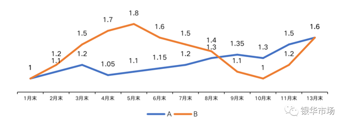 基金A和基金B一年内的净值走势模拟