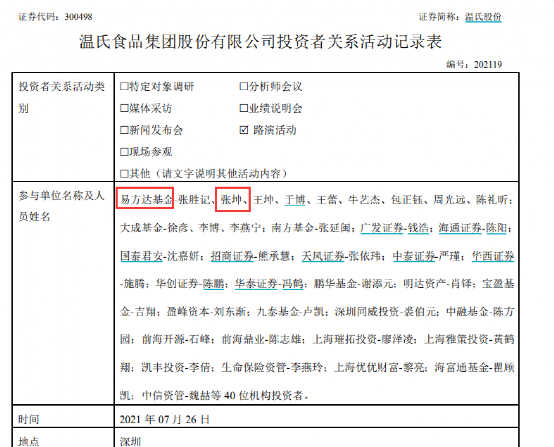 上市公司调研信息显示,7月26日,张坤参与了养猪企业温氏股份的调研,南方基金、前海开源基金、大成基金、明达资产等28家知名机构也与他一同进行了调研。